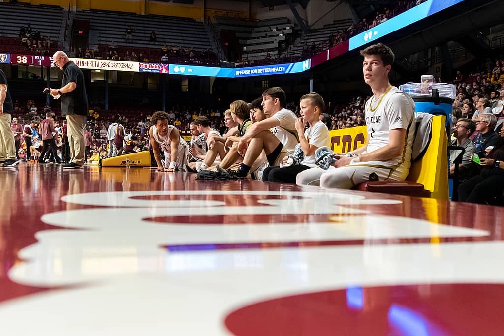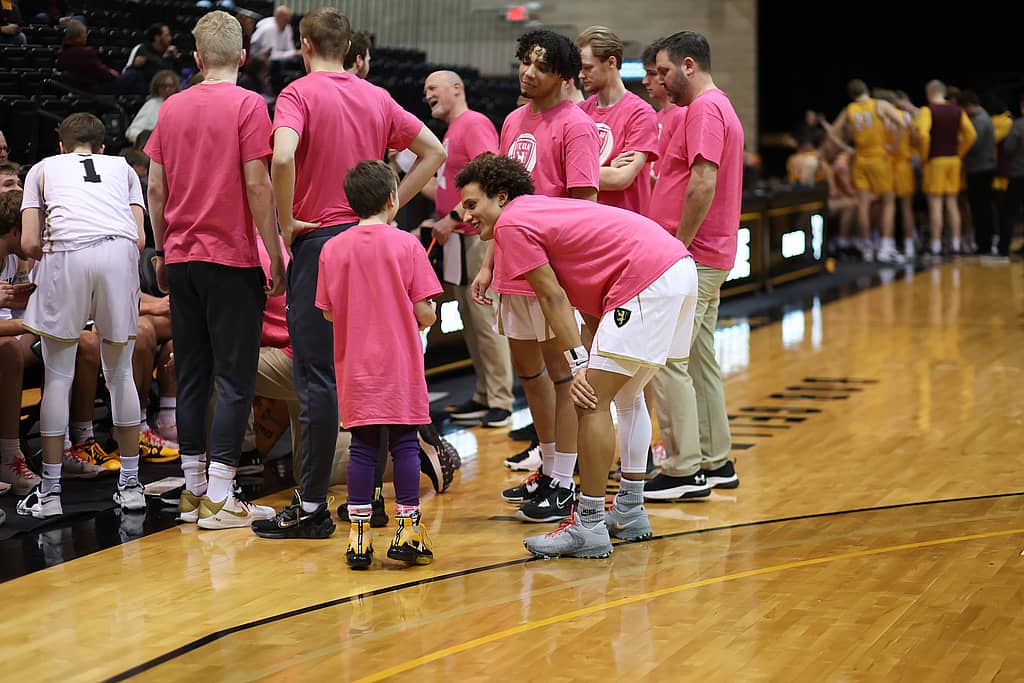 The team played with Torin “in the way you would play with a little brother,” Catherine said. From afar, Catherine watched the players interact with her son. “The team treating him like he’s not breakable when everybody else was so cautious with him let him figure out who he is again. It gave him the confidence to know that his presence was going to be welcomed and not be questioned,” she recalled. “The way Addi, from day one, has always ruffled Torin’s hair every time he passes him. The expanding of team huddles to make sure there’s a place for him. The widening of timeout circles to make sure he’s not behind their backs. Teammates subbing out and going all the way down to the end of the bench when they come off the floor to include him in their high fives. The players knowing his favorite flavor of Quench gum and bringing him a piece from the trainer’s table when they get up to get their own. It’s all the small actions that show Torin that he matters to them and he’s a part of their community. They have taught him what it is to feel a part of a team.”